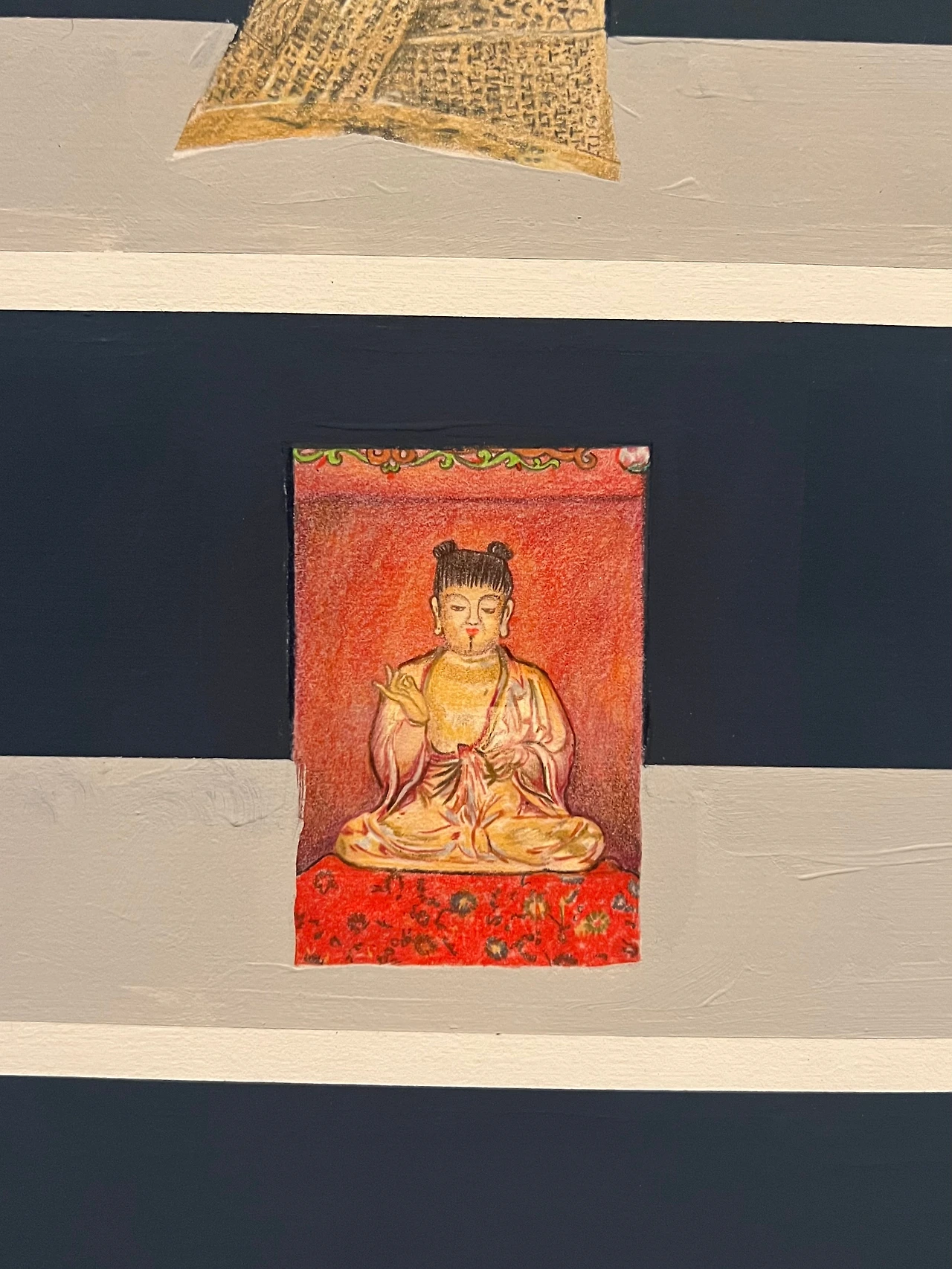 작가는 코로나 기간 동안 피바디 박물관에 취직해서 수장고의 유물에서 떨어져 나온 유물의 가루를 모두 모아 이 위에 뿌렸다. 박물관 제도를 파기하지 않으면서 자연스럽게 유물이 비의 신 차크와 재회할 수 있는 기회를 만든 것이다.