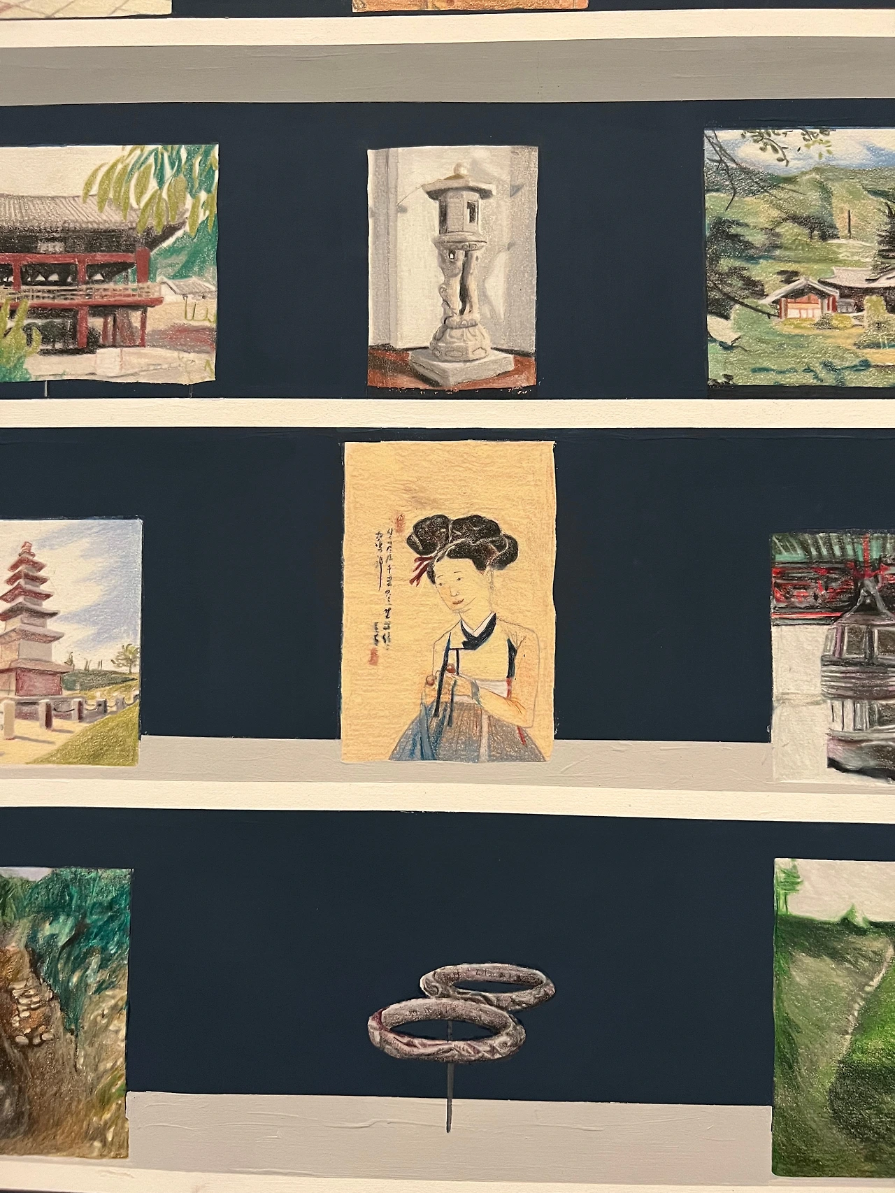 갈라 포라스 킴은 다시 한번 제도에 질문을 던진다. 박물관 유물들은 역사가 오래되었다. 국립중앙박물관에 가면 이 드로잉처럼 파손된 유물들이 전문 복원사의 손을 거쳐 복원되어 전시되고 있다.