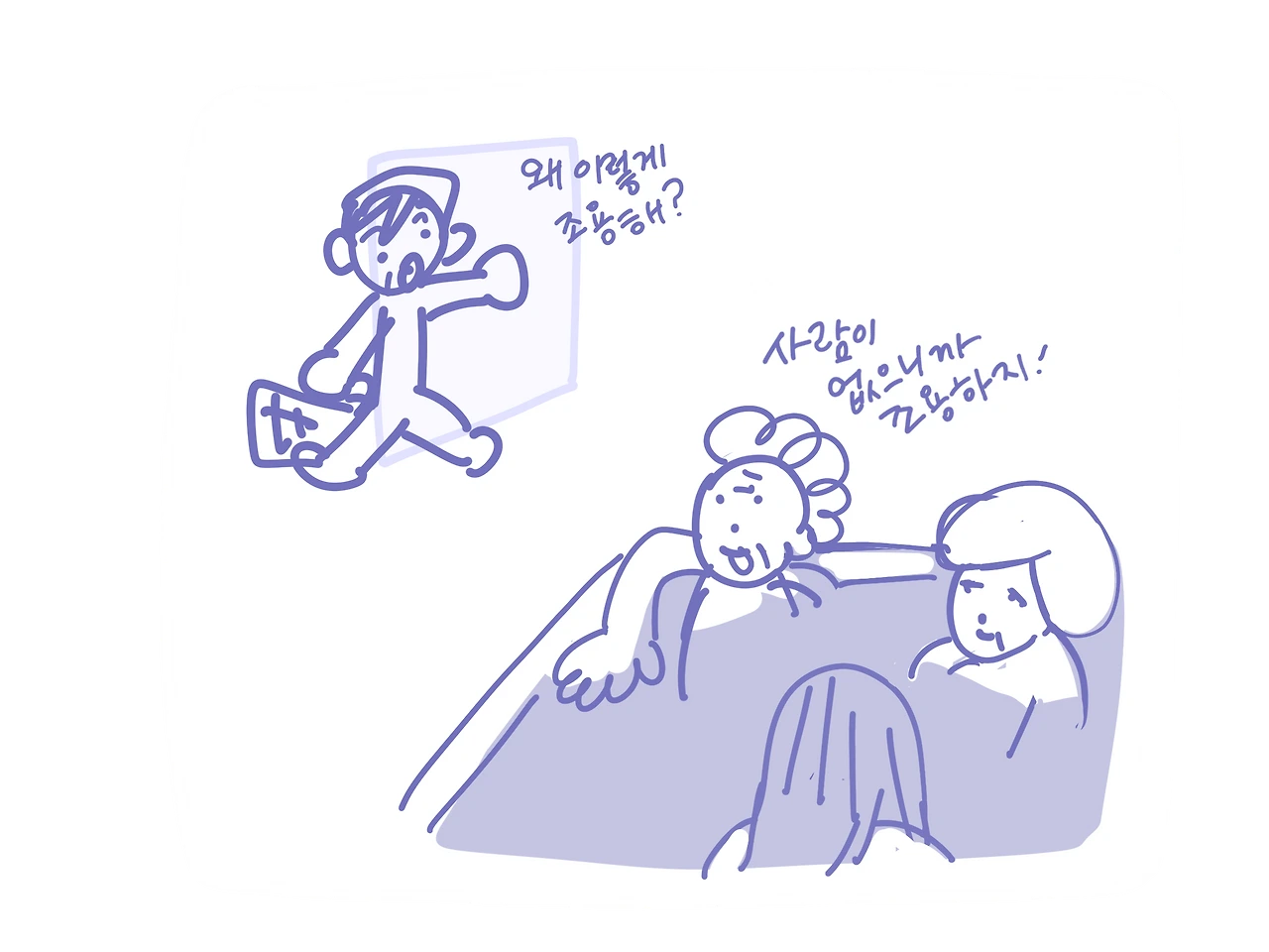 < 그림 제공 : 지은 >할머니들의 소소한 일상 얘기와 온탕의 따뜻함에 나도 모르게 나른해졌다. 눈꺼풀이 무거워질 즈음, 아주머니 한 분이 들어오며 툭 한마디를 던졌다.