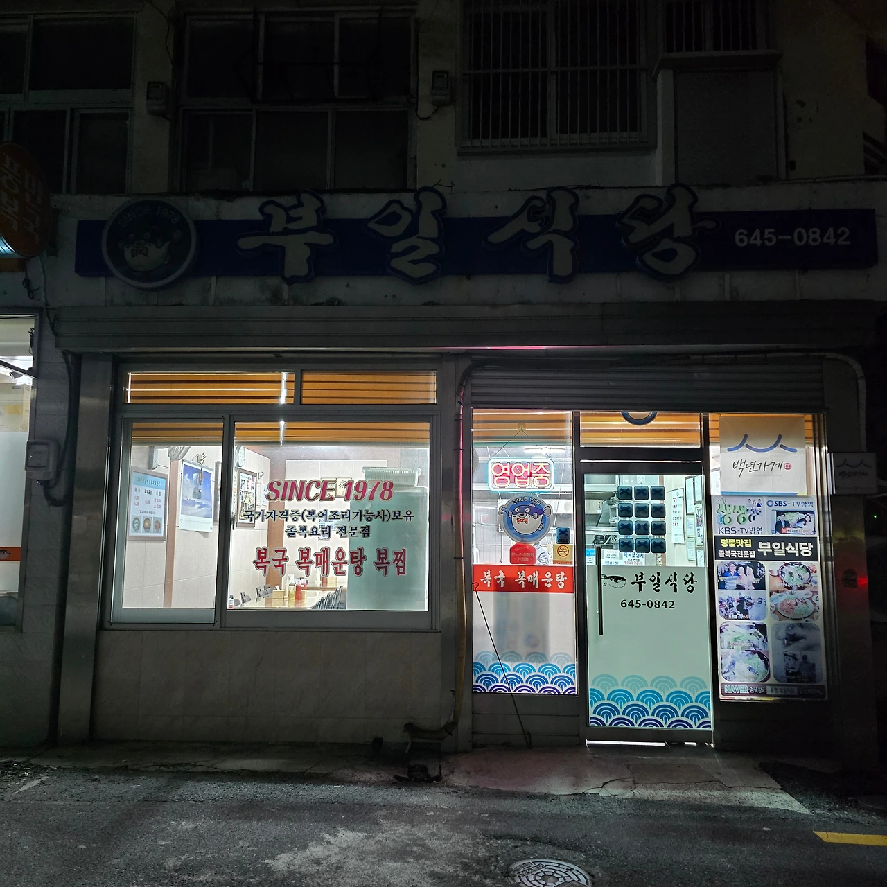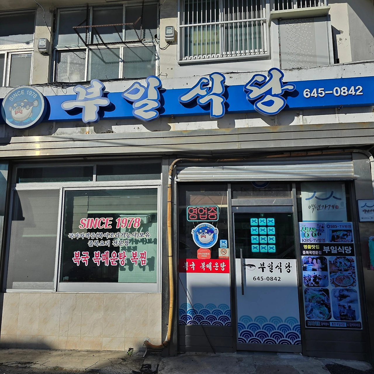 네. 대를 이어 운영하고 있어요. 저는 딸 넷 아들 하나 중 둘째 딸! 부모님께서 1978년도부터 이 자리에 터를 잡으시고 장사를 시작하셨어요. 엄마가 아주 어렸을 때부터 외할아버지가 복어를 잡아 오시면 국을 끓여 드셨답니다. 그때는 메주콩을 같이 넣어서 그 콩이 흐물흐물해질 때까지 푹 고아서 드셨다네요. 그래서 무슨 장사를 해볼까? 하시다가 바닷가 사람들이 워낙 술도 많이 드시니 해장국을 생각하다가 ‘아! 내가 끓일 수 있는 복국을 하자’해서 부일식당이 탄생했다고 합니다.