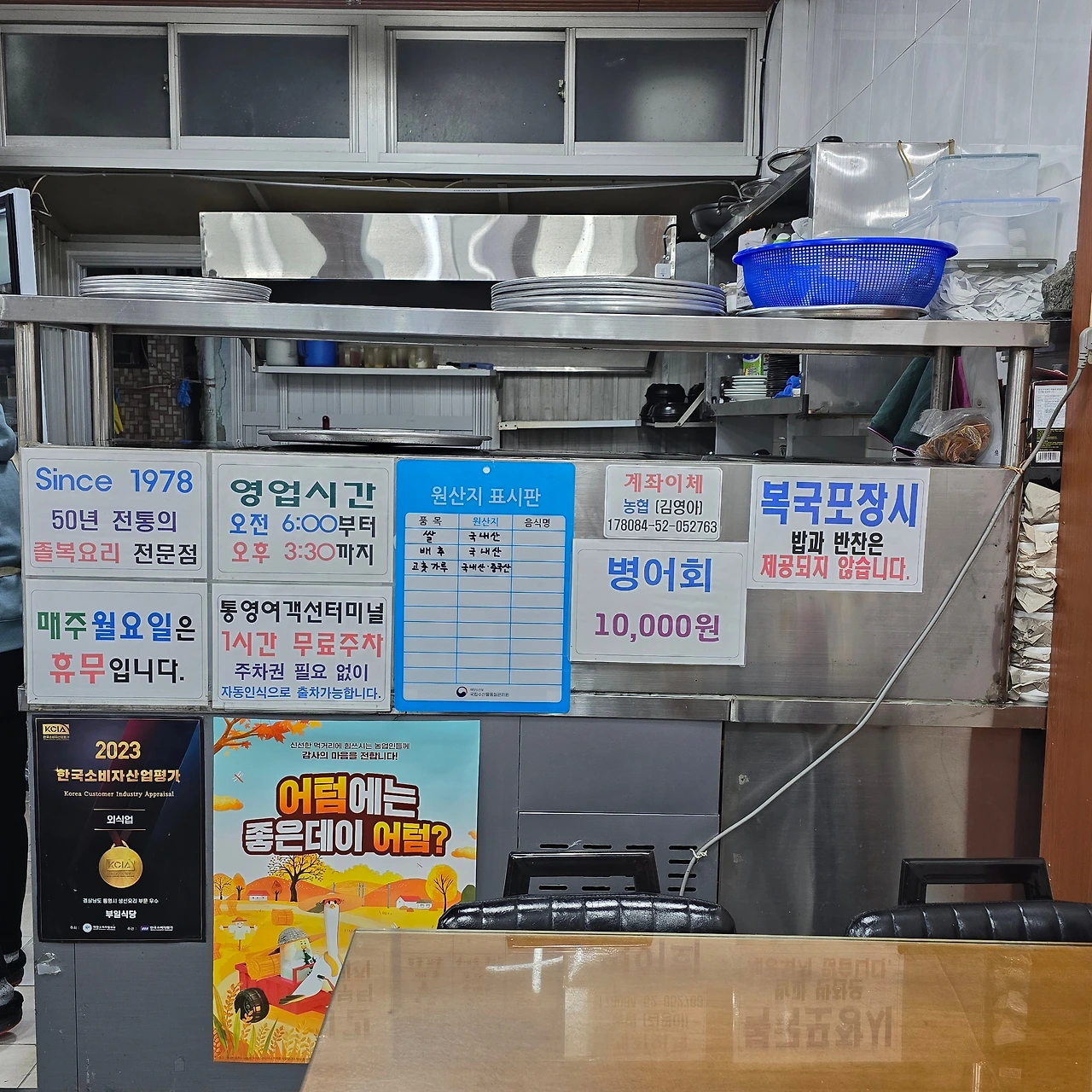 저희가 원래는 새벽 4시 30분부터 영업을 시작했는데 3년 전 부모님이 은퇴하시면서 새벽 6시로 제가 영업시간을 변경했습니다. 오시는 손님들 질문 중 하나가 ‘4시 30분에 누가 식사하러 오시냐?’였거든요. 그때도 오세요. 제가 가게를 시작한 게 벌써 20년이니... 그 시간에는 가게 마치고 오시는 분, 낚시하러 가시는 분, 밤낚시하고 오시는 분, 장사 시작하러 오시는 분, 밤새 고스톱 치고 오는 분들... 참 사연도 많고... 혹 가다가 술이 덜 깨서 가게 와서 주무시는 분도 계셔서 제가 6시로 늦춘 건지도 몰라요. 요즘은 주말에 거의 관광객분들이 많이 오십니다. 경기가 안 좋은데도 많이 찾아주셔서 얼마나 감사한지... 기존 단골분들도 있고 여객선터미널이 있으니 섬에 오가는 분들도 많이 오시고... 덕분에 오늘 만났잖아요.