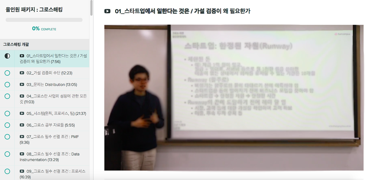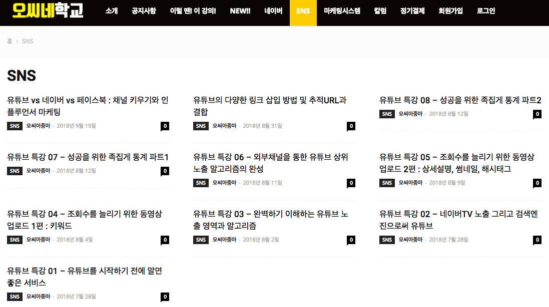 유튜브, 네이버, 페이스북 키워드 광고와 마케팅에 관한 강의를 매주 업데이트하여 업로드해주시는 '오씨 아줌마'께서 (남자 선생님이시다) 오픈하신 사이트인데 유료로 강의를 업로드하고 계신다. 아직 5개의 강의밖에 듣지 못했는데, 특히 키워드 광고와 아직은 오리무중 한 유튜브에 대한 인사이트를 얻기에 최적인 곳이다.
