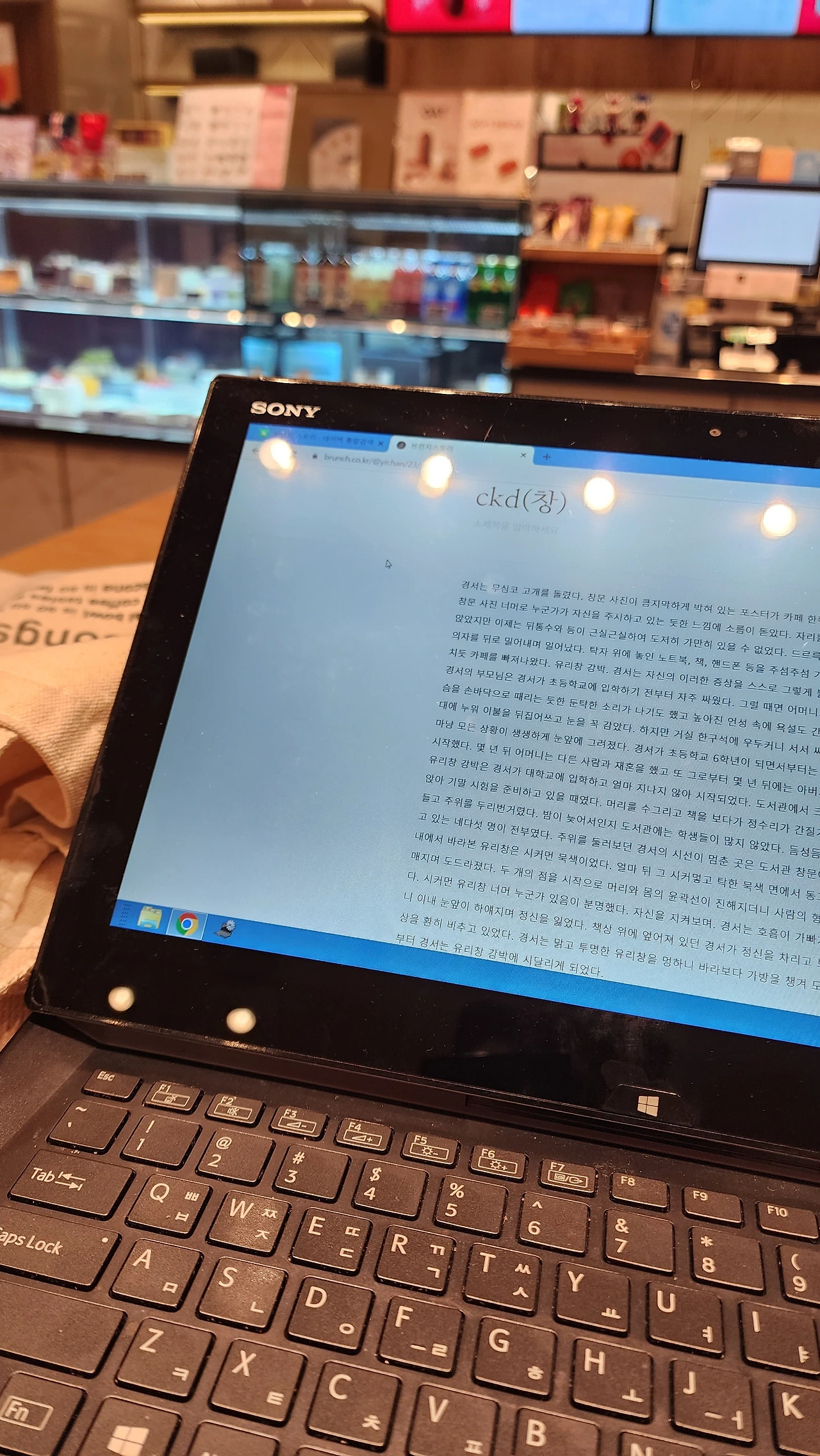 카페에서, 음악을 들으며 누군가의 글을 읽고 커피를 마시고 소설을 쓰며 머리를 쥐어짜고 있다. 이 시간이 그저 좋았다.