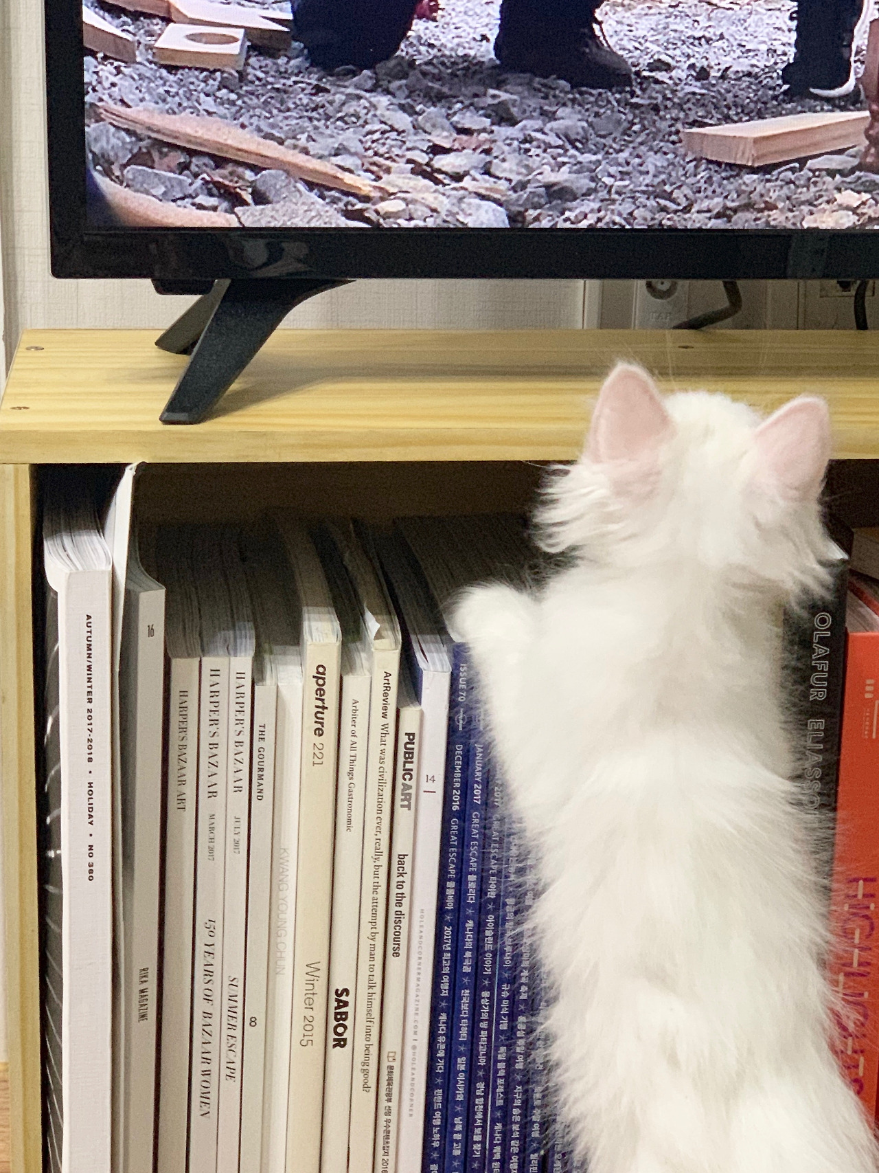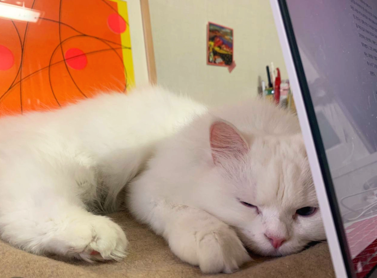 "우리 집 애 데려가." 매일 같이 어떤 아이를 만날 수 있을까 찾아 헤매던 내게 그러지 말고 자기네 새끼 중 한 마리를 데려가라고 한 것이다. 친구네 집에서 세 번째 출산인가, 이제 삼대가 살게 돼 너무 북적여 입양처를 찾고 있다고 했다. 친구는 사진 몇 장을 보내줬고, 그렇게 충격적으로 예쁘고 똘망똘망하게 생긴 하얀 눈송이 같은 고양이 한 마리를 데려오게 됐다.