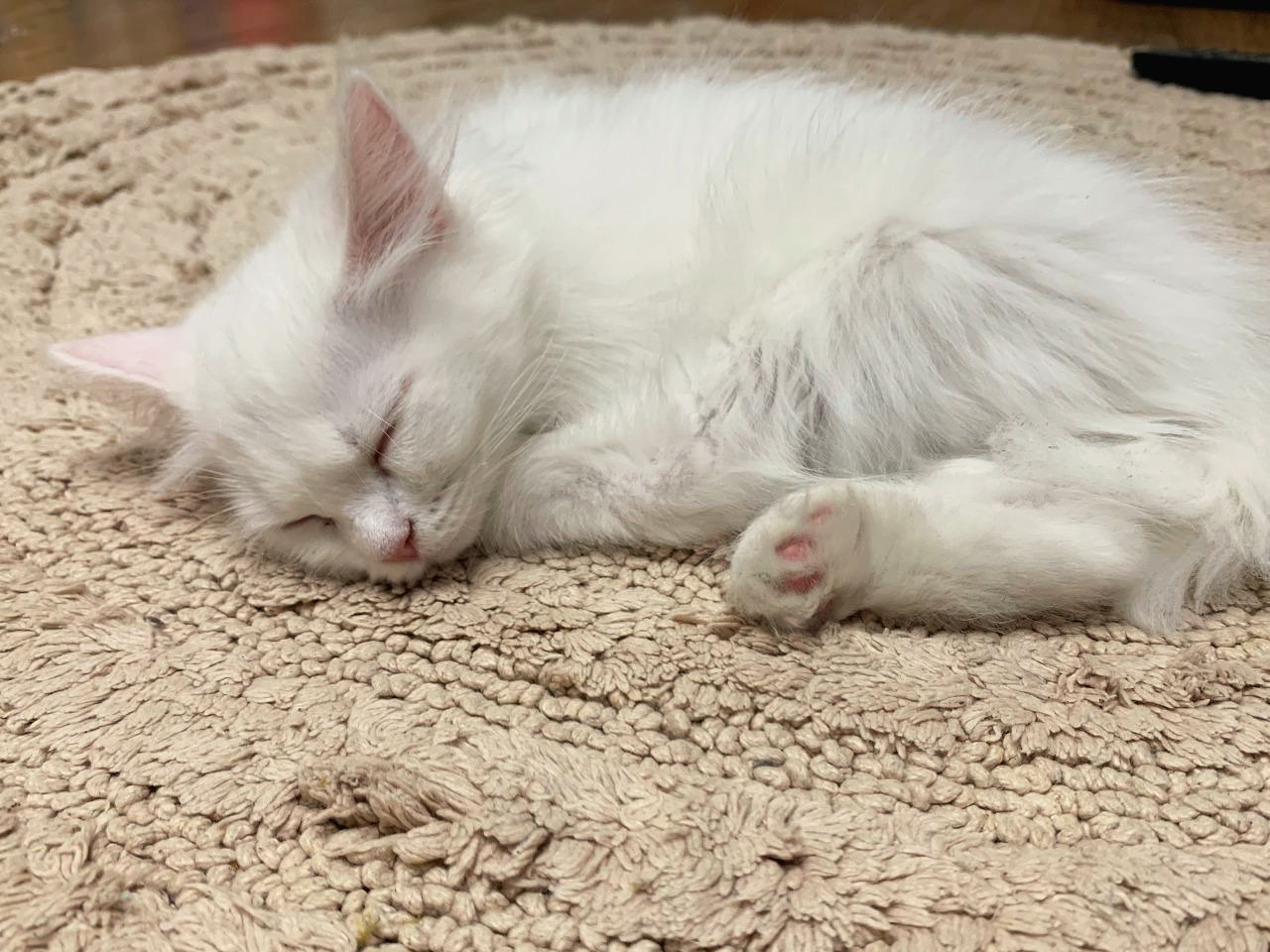 순간 이 작은 아이를 정말 엄마와 무리에게서 떼어내 혼자 데려와도 되는 걸까 죄책감이 스치기도 했다. 감사하게도 친구 어머니께서 고양이가 불안해하지 않도록 아기가 매일 잠에 들던 천을 잘라 함께 넣어주셨다.