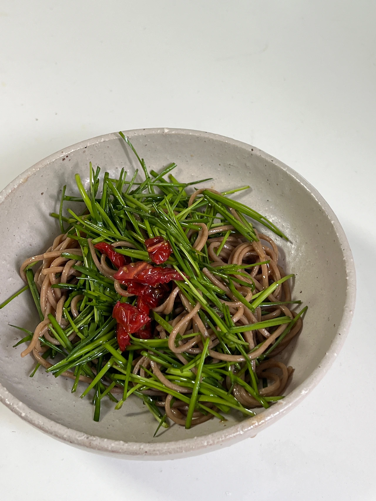 그래서 간단하게 먹기 좋은 부추들기름막국수를 만들었어요.