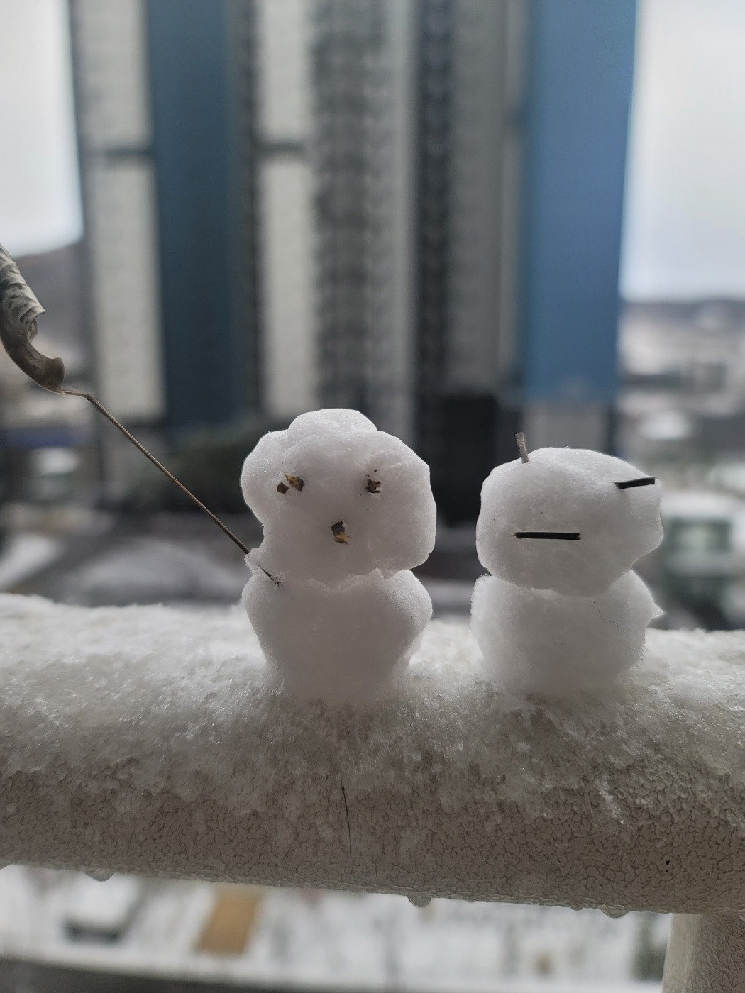 자동차 보닛 위에 얹혀있는 눈을 뭉쳐서 작은 눈사람을 만들었다.