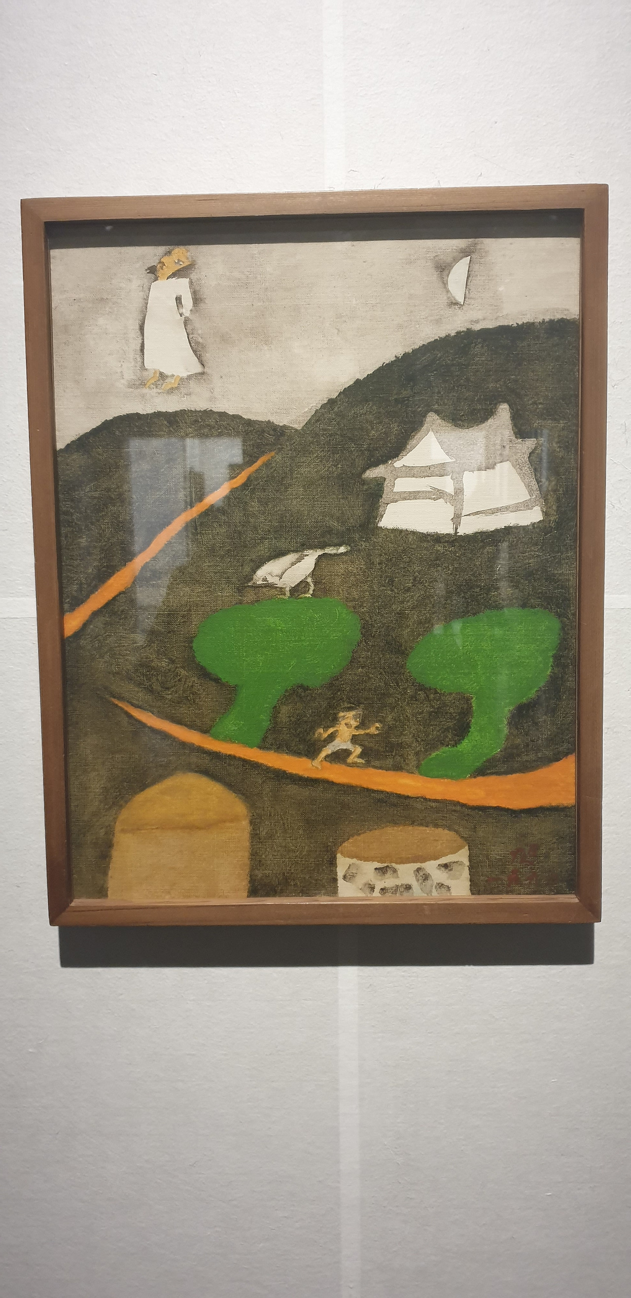 장욱진의 마지막 작품, 이미 생을 내려놓고 하늘에서 걸으며 땅에 미련이 없음을 표현했다.