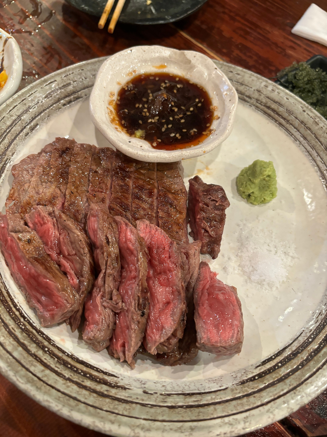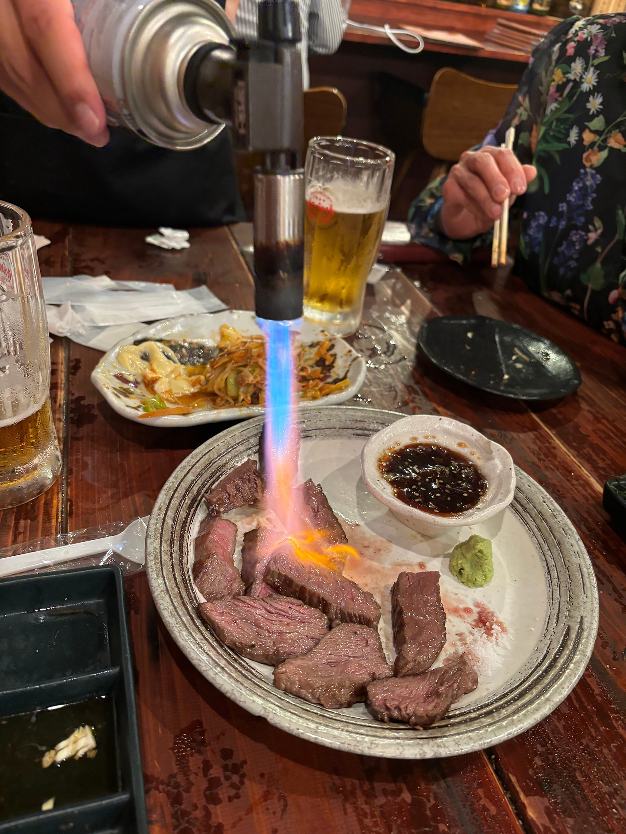 14일 오후 7시 30분 예약확정. 철판스테이크 코스에 음료 무제한. 맥주포함 1인당 5500엔 ~ 6천엔