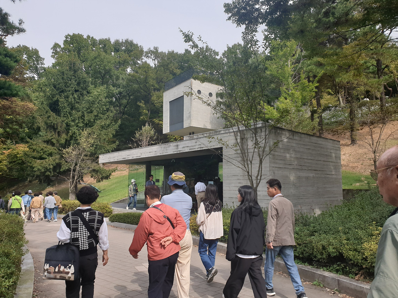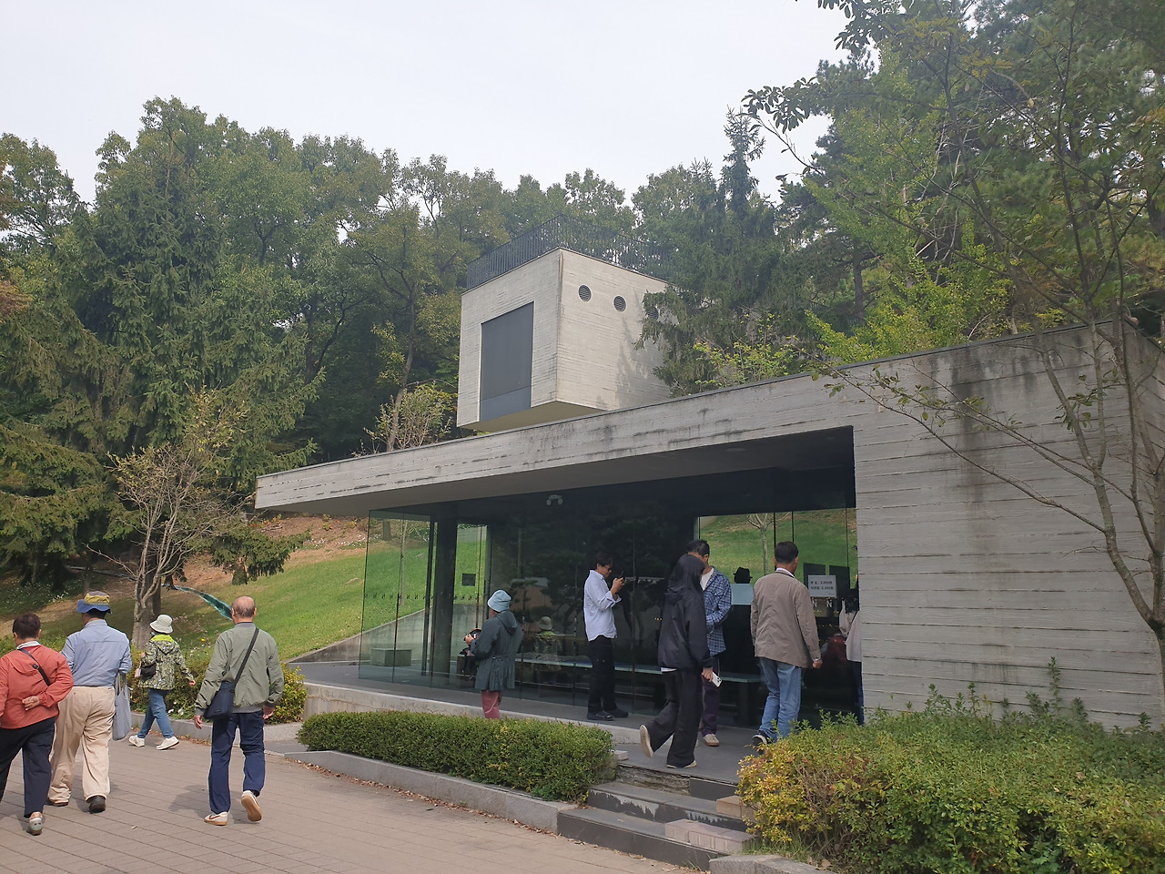 단순한 콘크리트 구조물의 세면을 유리로 마감하면서 뒤편의 자연과 성모상은 건물 내부를 넘어 길까지 통하고 초봉헌소는 길의 일부가 된다.