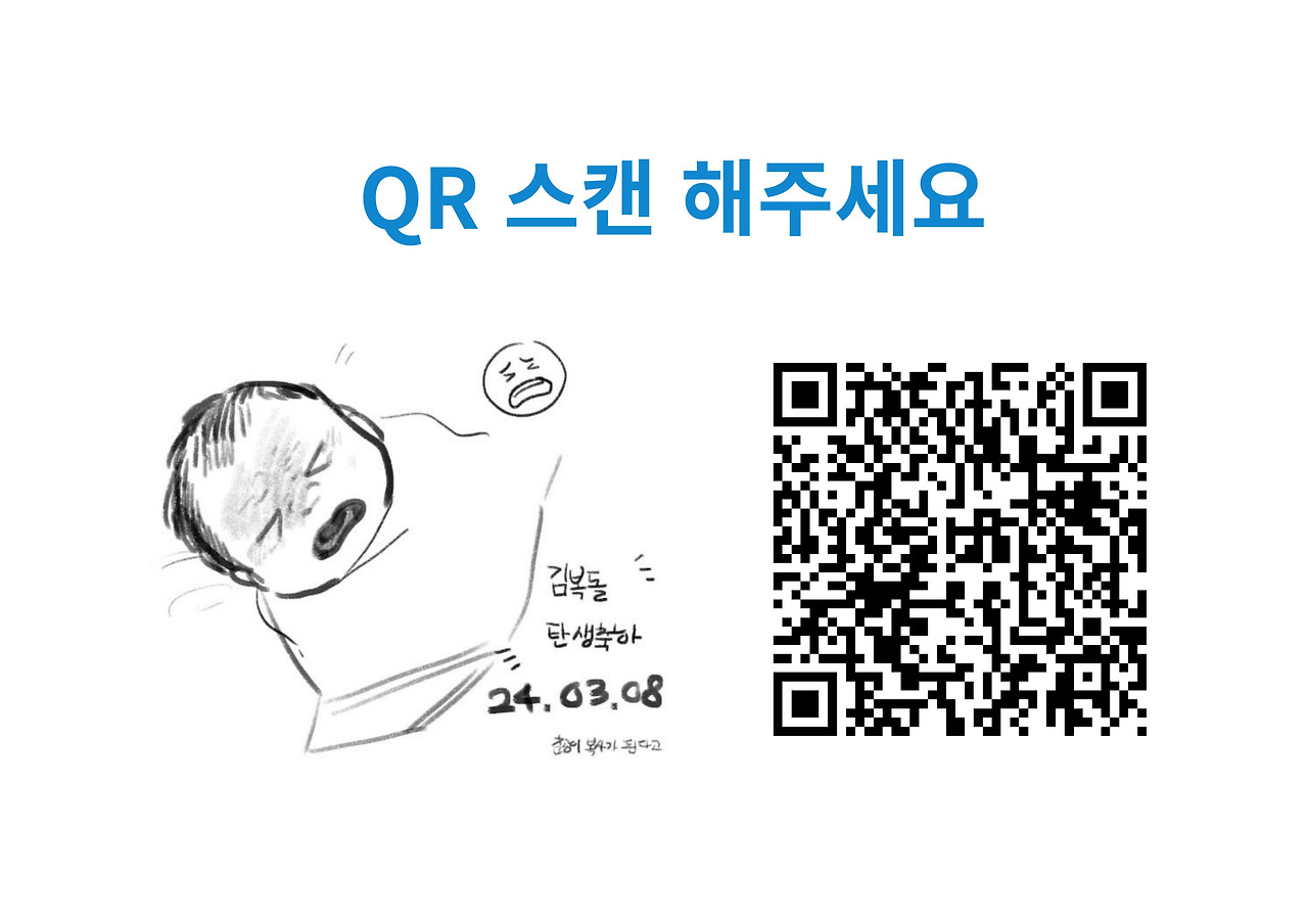 식사하면서 즐길 수 있도록 음식접시를 채워주시고 식이 진행하는 동안에는 착석상태를 유지하고 집중해 주시기 바랍니다. 자료준비가 아직 안된 분은 QR을 스캔해서 준비된 자료를 참고하시면 좋겠습니다. 감사합니다.