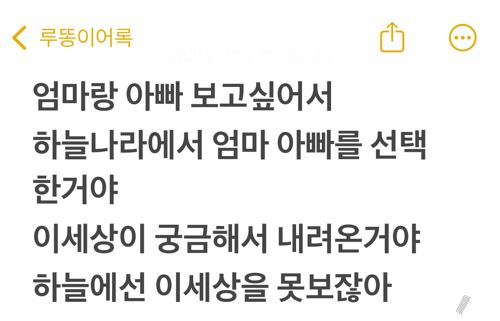 “루똥아, 루똥이는 이 세상에 왜 왔을까?”