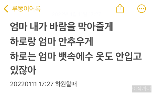 육아와 가사를 일로 생각하기에 차디찬 엄마의 마음과 생각을 따뜻하게 데워주는구나.