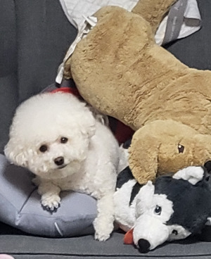 설이를 처음 만난 건 21년 3월이었고, 1살 정도로 추정되는 비숑프리제였다. 신랑 회사 직원의 어머니가 키우고 계셨는데 어떤 사연에서인지 그 어머니도 원래부터 키우시던 강아지가 아니었고, 그 당시도 키울 수 있는 여건이 안되셔서 설이가 사랑받을 곳을 찾고 있다고 들었다.