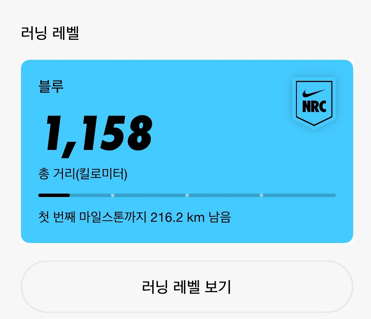 그래서, 생각보다도 꽤 오랫동안, 나는 즐겁게 러닝을 하고 있다. 여느 때처럼 스트레칭을 하고, 고관절을 충분히 풀어준 뒤 스마트워치의 나이키런 어플을 켜서 러닝 기록을 한다. 누적거리 250km를 넘겨 그린레벨로 올라갔던 게 작년 같은데, 이제는 누적거리 1000km를 넘겨 블루레벨로 렙업을 하게 되었다. 가랑비에 옷 젖는다고, 자잘하게 뛰던 것들이 시나브로 천 킬로가 되었나 보다. 스트레스를 풀려고 그냥 즐겁게 달렸는데, 구르는 다리는 그저 저절로 돌아가고, 내 마일리지도 그렇게 늘어간다.