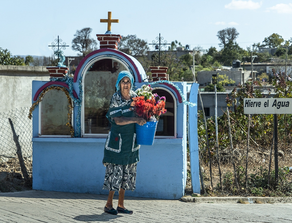 이에르베 엘 아구아 폭포로 가는 마을 안 길. 길이 교차하는 지점에 과달루페 성모를 모신 작은 집이 있다. 마치 우리나라의 성황당과도 같다.