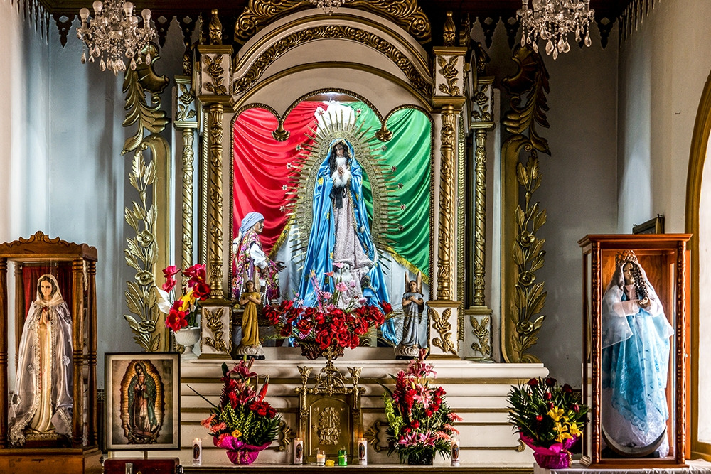 멕시코의 성당에서 볼 수 있는 성모는 유럽인들이 모시는 성모가 아니다. 과달루페 성모는 추운 겨울 멕시코 농부 앞에 나타나 장미꽃을 내려준 멕시코의 성모이며 그래서 피부 빛깔도 검은색의 멕시코 토착인의 피부색이다.