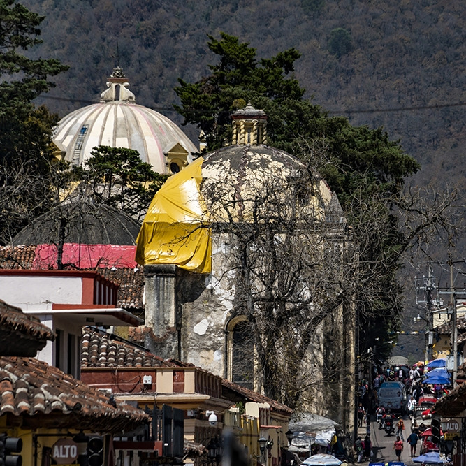 나는 산 크리스토발의 가장 인상적인 색깔을 성당 안에서 만났다. 그것은 도시의 중심 광장에 서 있는 대성당이 아니었다. 시의 동쪽 끝 언덕 위에 있는 과달루페 성당은 작고 특별한 장식도 없는, 시골 마을의 작은 성당 분위기가 풍기는 곳이었다. 그러나 안에 들어서서 느낀 그 야릇한 감정은 설명하기 어려운 뭔가가 있었다.