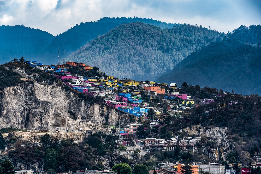언덕 위에서 본 산 크리스토발 시내는 잔잔한 주택과 상가들을 압도하면서 성당들이 자리 잡고 있었다. 그런데 나에게는 건너편 산의 능선을 꽉 채운 원색의 마을이 더 눈에 들어왔다. 채석장 뒤의 바위 절벽 위에 아슬아슬하게 지어진 조그만 집들은 구역별로 빨강 파랑 노랑의 삼원색으로 칠해져 있었다.