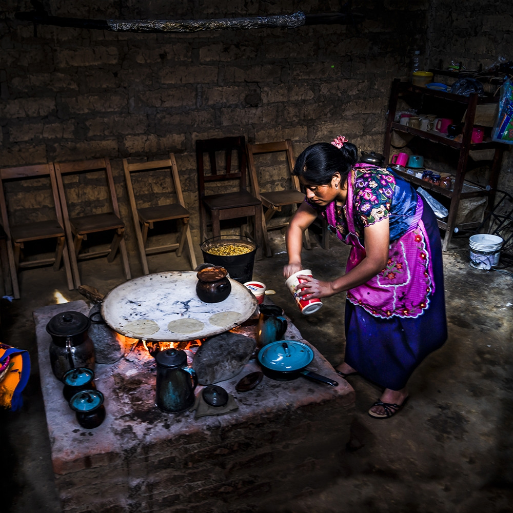 마을 사람들의 입은 옷을 보면 멕시코의 다른 곳에서와 같은 요란한 원색의 향연은 찾아볼 수 없다. 원색조를 벗어났다는 것은 아니지만 이들의 옷에서 보는 색은 파란색과 초록색, 붉은색과 보라색, 그리고 검은색이 거의 대부분이라고 할 수 있다. 차물라 마을에 오기 전 잠깐 들린 시나간탄 마을에서 또띠야를 굽는 여성의 파란색과 보라색이 어울린 복장이 매우 인상적이었다.
