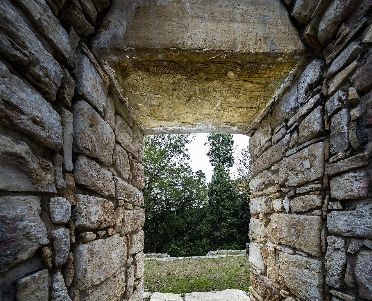 이들이 돌에 기록을 남기는 방법으로 특이한 것을 들자면 출입문의 상인방에 새긴 것이다. 상인방이란 건물에 들어가는 현관문 위에 가로로 걸친 부재를 말한다. 말하자면 문틀의 윗부분에 해당하는 부재이다. 마야의 석조 건물은 문도 모두 돌벽으로 만든 것인데 양쪽 석벽의 위를 덮은 넙적한 판석이 바로 상인방이다. 이 상인방의 밑 면에 그림과 글씨를 새겨 역사적 사실을 기념하고 기록한 것을 상인방비라 할 수 있다. 내가 견문이 짧은 탓인지는 알 수 없으나 이처럼 상인방에 새긴 비의 형태는 멕시코 외의 문화에서 본 일이 없다.