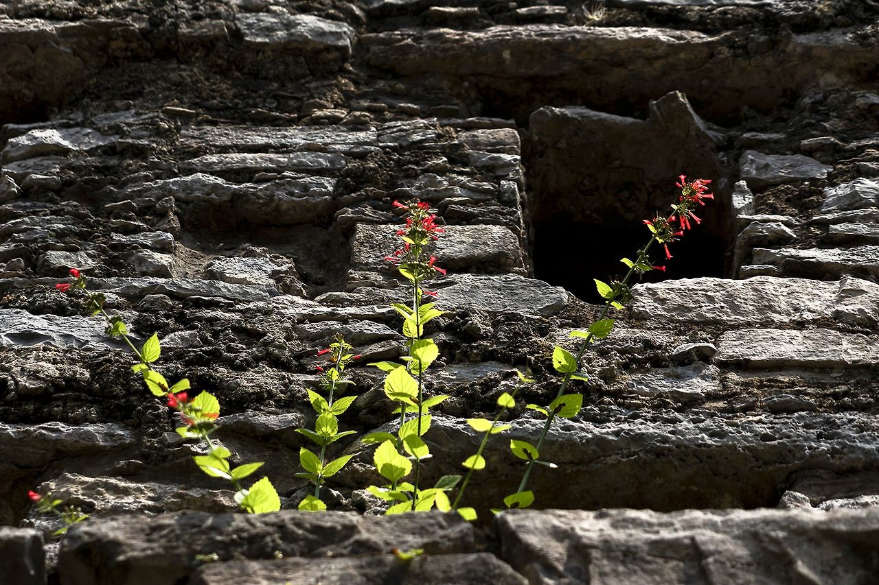 미로라고 부르는 19호 건물을 뒤에서 보면 지붕 위의 루프콤이 있던 흔적이 아주 가깝게 보인다. 상부가 무너지고 아랫부분 일부가 겨우 남아 있는 루프콤의 모습은 그 나름대로 건축물을 아름답게 보이게 하는 매력이 있다.