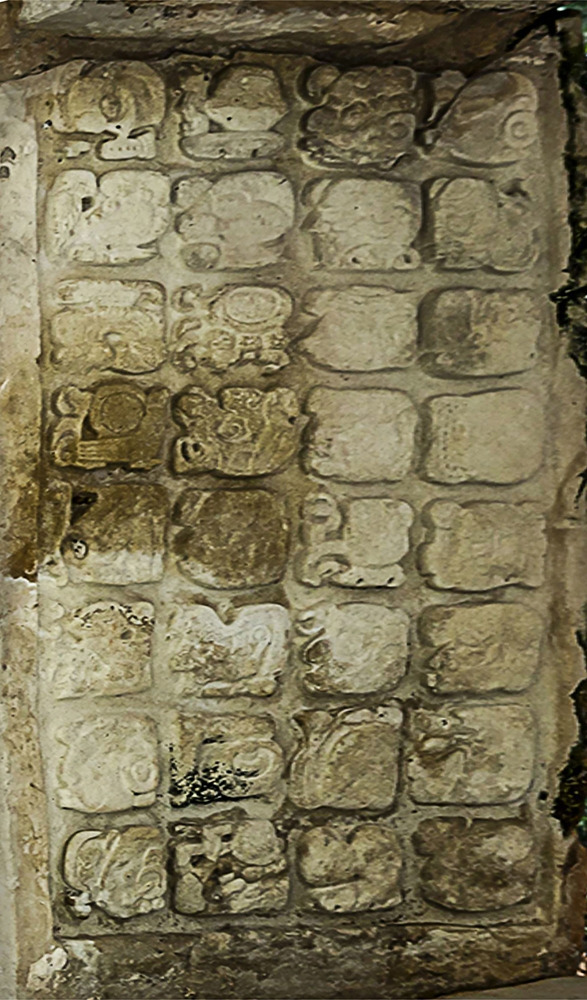 제단석 측면에는 인물상이 있고 인물상 주위에는 마야 문자가 새겨져 있다. 그런데 인물상도 자세히 보면 사각형의 틀에 맞춰 앉아 있어서 마야 문자로 추정된다.