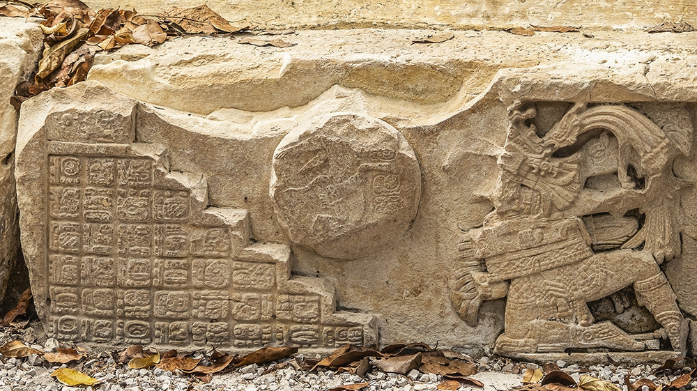 그리고 그림의 주위에 소위 마야 문자라고 하는 문자를 새겨 그림의 내용을 설명하고 있다. 이러한 비석의 구성으로 비석은 무척 아름다운 예술품이 되었다.