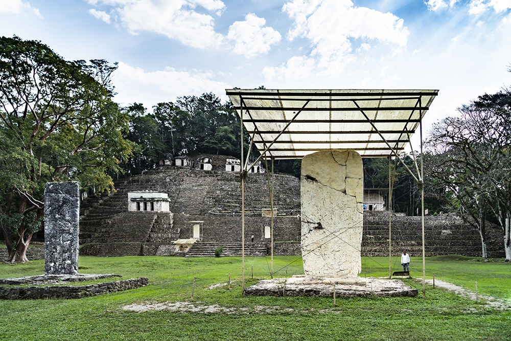 두 비석 중에서 흰색의 큰 비석이 찬무안 2세의 전성기(8세기 말)를 기록한 1호 비석이다. 빗돌의 흰색과 비면에 새겨진 화려한 의상의 찬무안 2세는 마치 신비로운 기운이 감싸고도는 듯한 느낌을 준다.