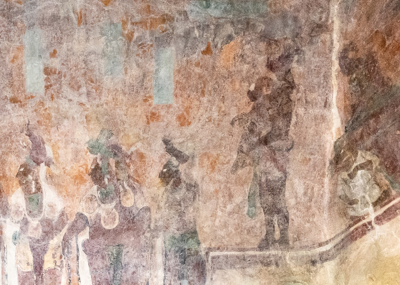 마야의 역사를 제대로 모르기 때문에 그림에 대한 이해는 쉽지 않았다. 그러나 행진하는 악대와 춤을 추는 사람들, 귀족들로 보이는 화려한 장식의 인물들, 그리고 인물들에 쓰인 문자 캡션들은 그대로 고구려의 안악 3호분이나 덕흥리 고분 속에 서 있는 느낌이었다.