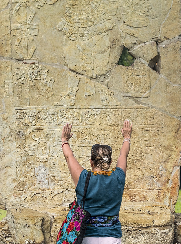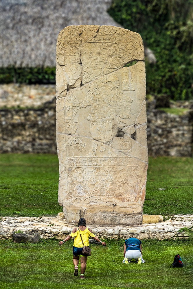앞에서도 설명한 적이 있지만 마야의 비석들은 단순히 글자만으로 역사를 기록한 우리의 비석과는 그 기록의 방식에서 뚜렷한 차이가 있다. 이곳의 비석은 마치 기념사진을 보는 듯이 세밀히 묘사된 그림들과 그림을 설명해주는 설명으로 이루어져 있다.