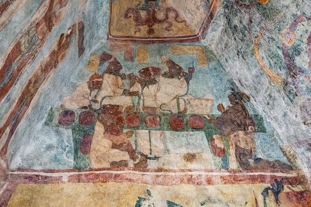앞에 소개한대로 북벽에 그려진 인물들의 상당수는 뒷 세대에 의해 얼굴 부분이 훼손되었다. 새로운 세력이 기존 세력을 제거하는 의미가 담겨 있는 것이다. 3호 석실은 왕위 계승, 전쟁에서의 승리, 그리고 축제의 환호와 유혈의식을 비롯한 희생제의가 한꺼번에 등장하면서 마야의 역사와 문화를 종합판으로 보여주는 박물관이다.