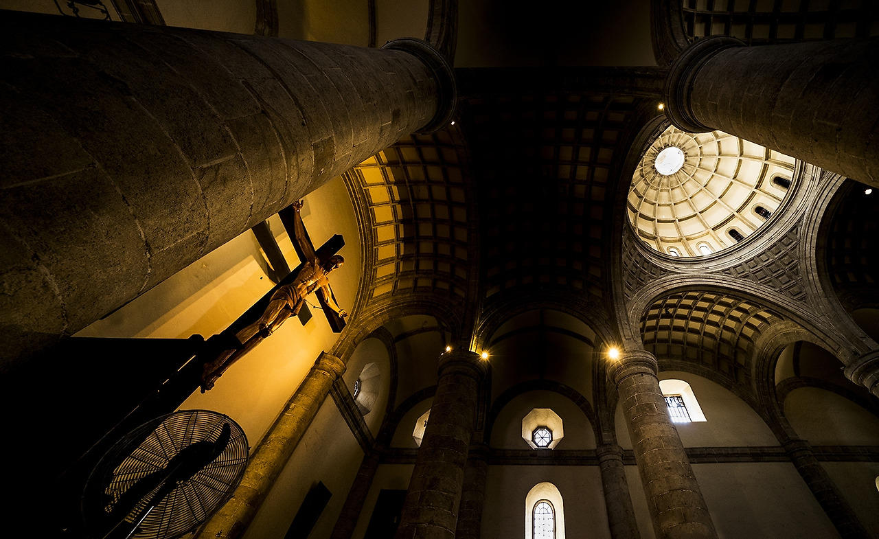 성당 내부는 프란치스코 회 전통에 따라 비교적 간결하게 꾸며져 있으나 중앙 제단의 뒤에 서 있는 십자가는 12미터나 되는 거대한 것이다. 십자가에 매달린 예수상 만도 8미터나 된다는데 미주 대륙에서 가장 큰 십자가 예수상이라고 한다. 제단 앞의 천정은 반구형의 돔으로 구성되었는데 돔 꼭대기의 광창과 밑면의 둘레를 돌아가며 낸 아치형 창문에서 햇살이 실내를 환하게 밝혀준다.