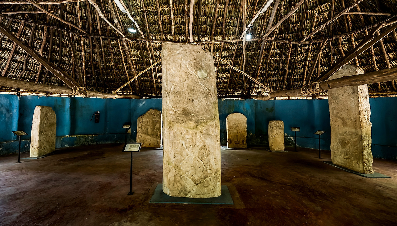진열실 한 복판에 있는 비석은 2호의 번호가 붙은 것이다. 이전에 야시칠란의 상인방에서 보았던 것과 비슷한 구도의 그림으로 오른쪽에 왕으로 보이는 화려한 관을 쓴 큰 인물이 서 있고 왼쪽 아래에 전쟁 포로로 보이는 작은 인물상이 서 있다. 비석에는 731년 8월 22일의 날짜가 기록되어 있다고 한다.
