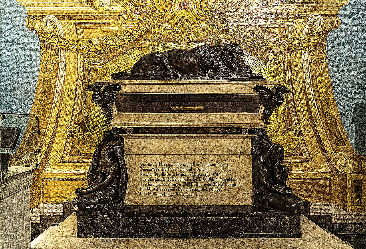 광장의 분수 너머로 보이는 대성당의 종탑피사로는 1541년 잉카제국 정복 후 잉카의 수도 쿠스코를 차지하기 위한 내부 분쟁 과정에서 살해되었으며 머리까지 잘린 채 대성당 바닥에 묻혔다. 그의 머리가 들어있던 납으로 된 상자가 발견된 것은 1977년이었으니 죽은 지 436년이 지나셔였다. 그리고 1985년 1월 16일 그의 유해는 금빛 관에 담겨 그가 지은 성당 안에 안치되었다.