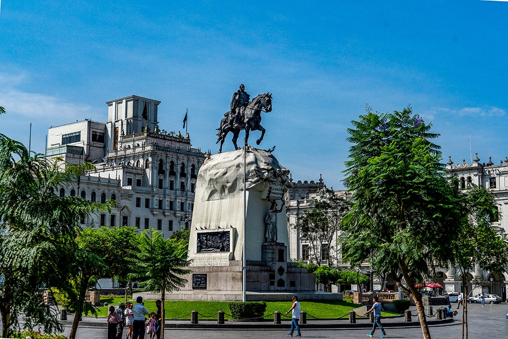 리마 대성당 앞길에서 남쪽으로 라 유니온 거리를 따라 다섯 블록을 내려가면 산 마르틴 광장이 나온다. 광장 한 복판에는 산 마르틴 장군의 동상이 서 있다. 산 마르틴 장군은 아르헨티나에서 태어났지만 당시는 남미는 모두 스페인의 영토로 한 나라나 마찬가지였다. 산 마르틴은 스페인과 맞서 남미의 각 지역을 독립시키는데 일생을 바쳤다.