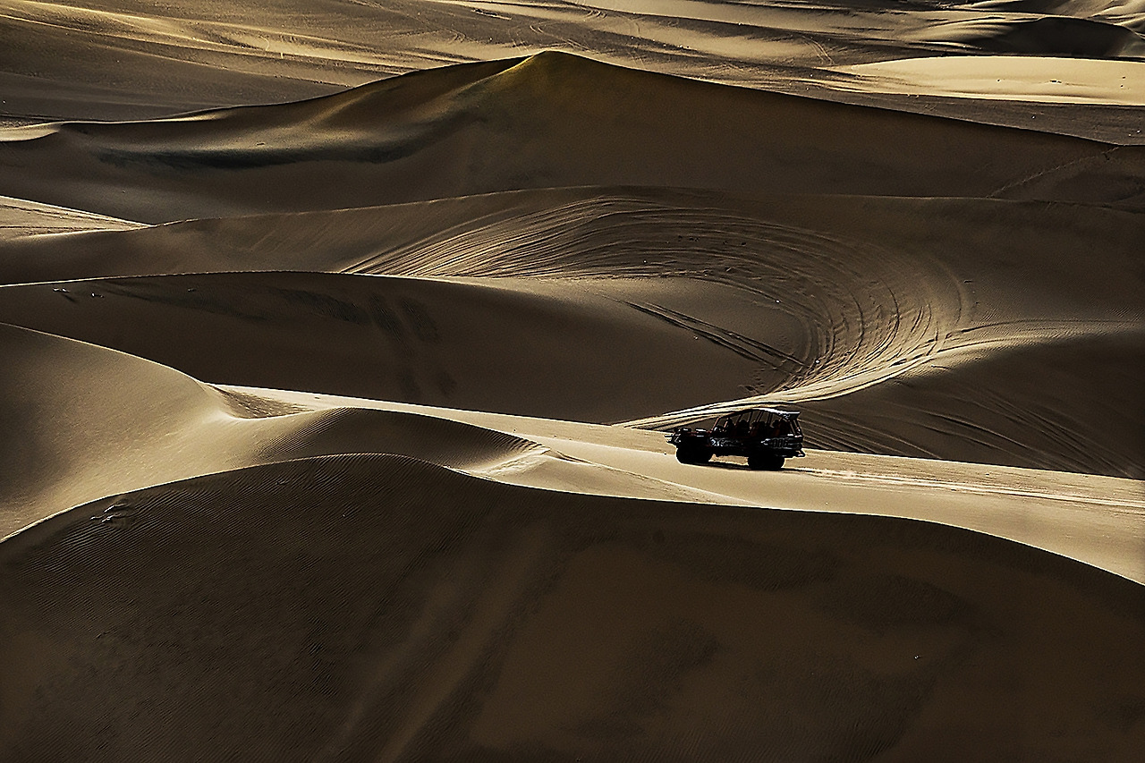 도시의 반대쪽으로 눈을 돌리면 이곳은 가도 가도 끝없는 모래사막이다. 그렇지만 실제는 도시 바로 옆에 붙어 있는 곳이어서 사막을 즐기려는 사람들이 쉽게 찾을 수 있고 또 모험을 즐길 수 있는 즐거운 놀이터이기도 하다. 마치 놀이공원에서 롤러코스터를 타듯 버기카를 즐기고 해 질 녘 모래언덕 뒤로 떨어지는 붉은 해를 감상할 수도 있고 오아시스 호수에서 보트 위에서 하늘을 볼 수도 있는 그런 곳이다.