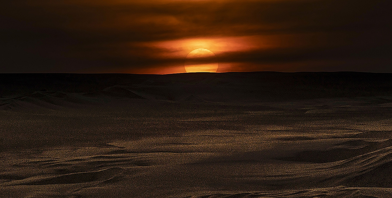 비포장 도로 위에 먼지를 날리며 퇴근하는 차량들도 보이고 그리고 붉은 해가 모래밭 뒤로 몸을 감춘다. 사막 한가운데의 도시와 또 오아시스와 끝없이 펼쳐진 모래밭에 어둠이 내려오고 있었다.