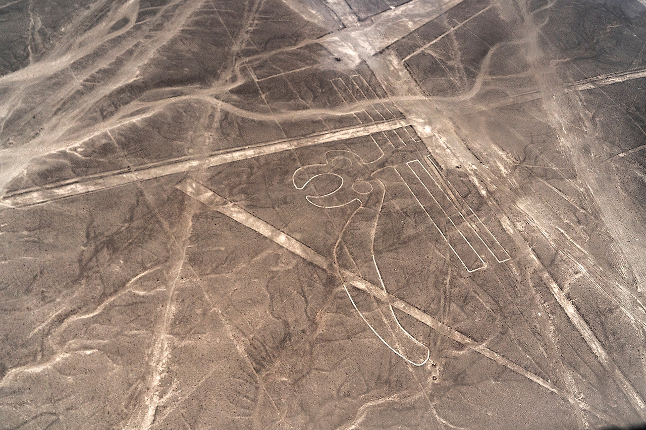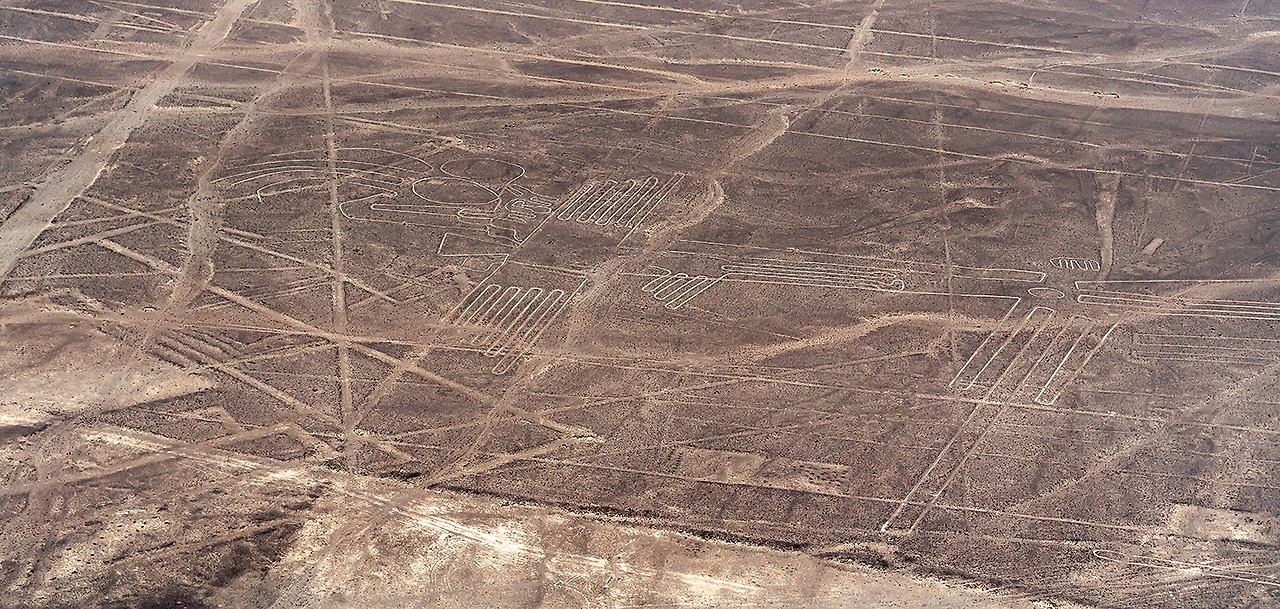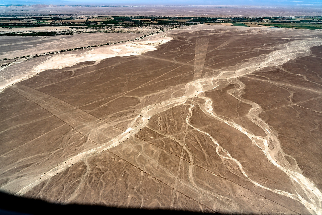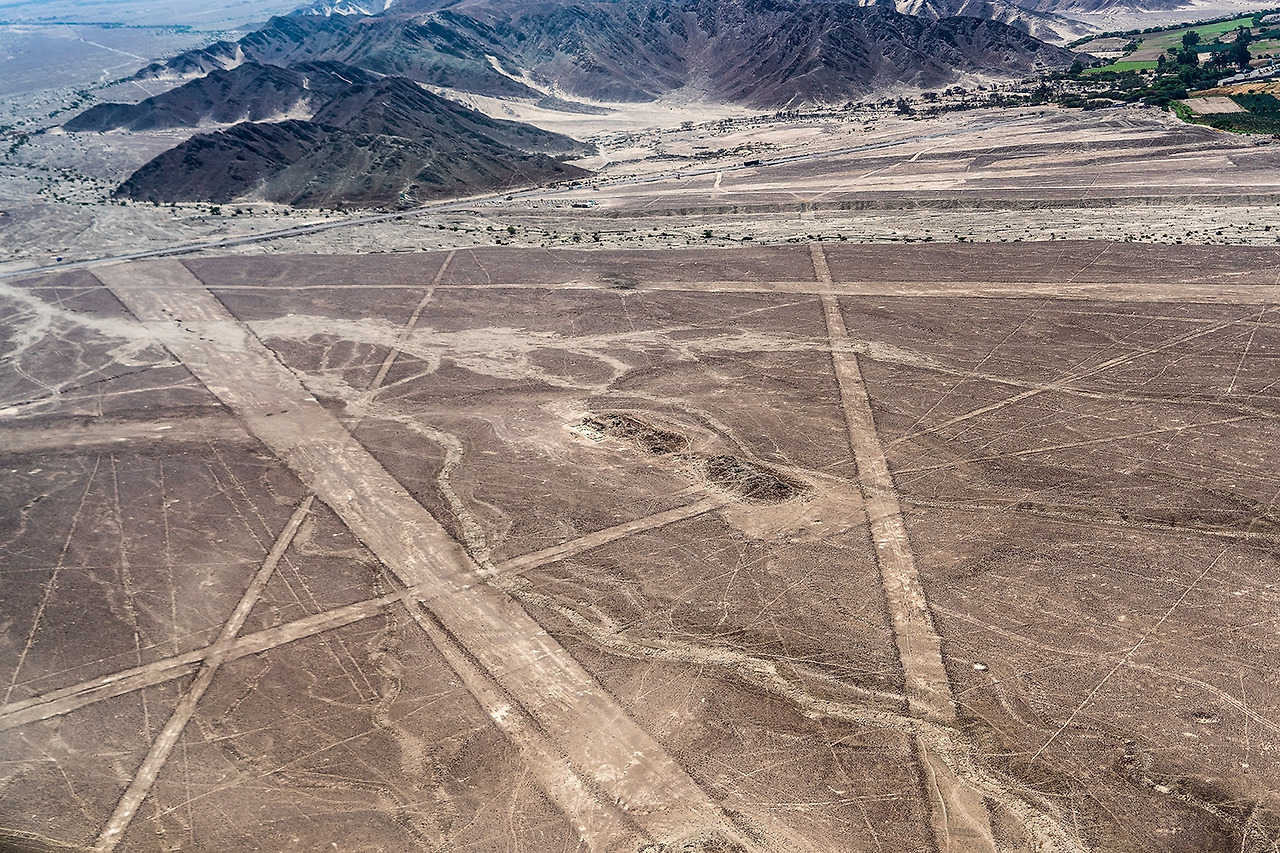 마치 활주로처럼 나스카 평원을 이리저리 가로지르고 있는 직선들. 긴 것은 수 킬로미터에 이르는 것도 있다.