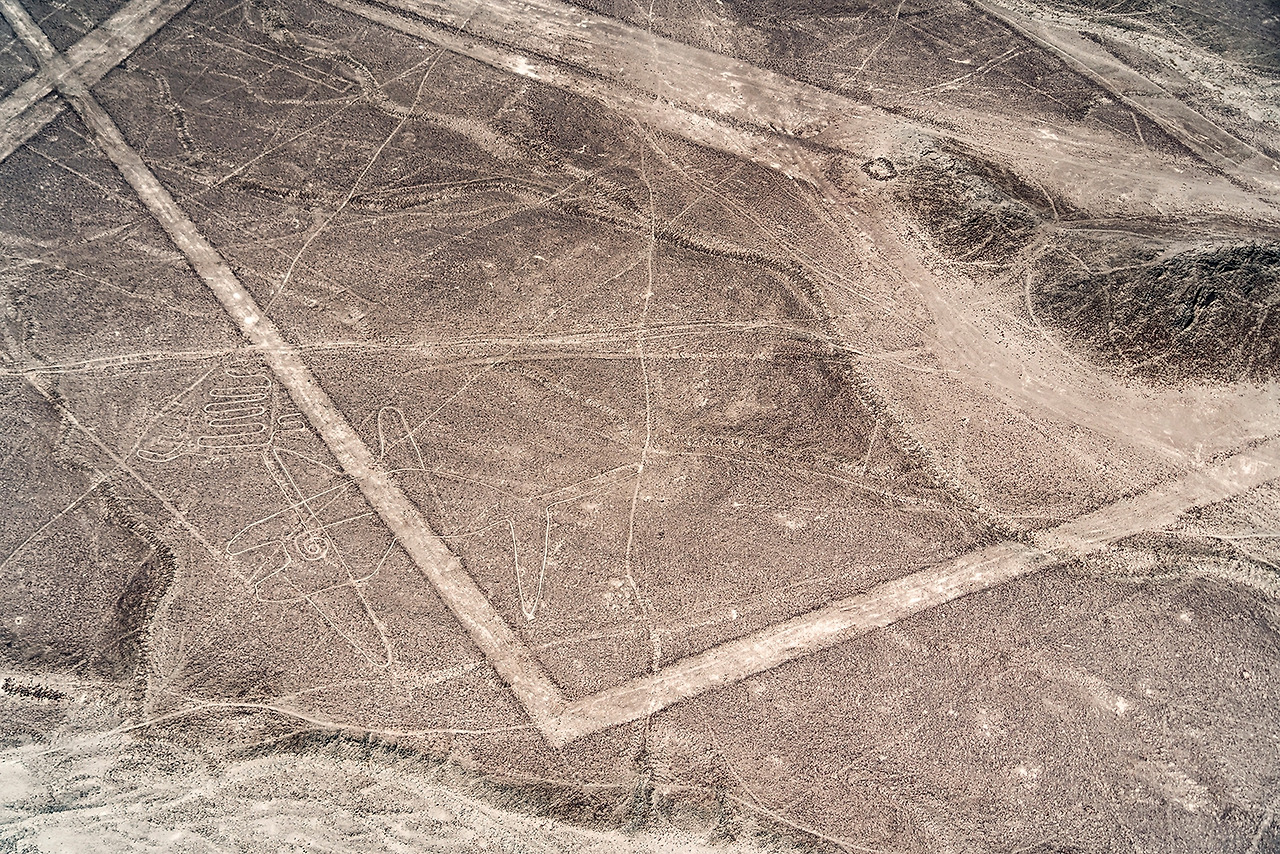 많은 선들 사이사이에는 또 많은 동물들이 보인다. 일반적으로 나스카를 찾는 사람들이 관심을 많이 보이는 것은 동물 그림들이다. 그림들은 대체로 개체의 수가 70여 개를 넘는다고 한다. 그러나 최근 2020년까지 드론을 이용한 조사 결과 80에서 100개 정도의 도형들이 발견되었다고 하니 실제로는 수백 개에 이를지도 모를 일이다. 소형 드론의 등장은 나스카 땅그림의 조사에도 새로운 전환점을 만든 것 같다.