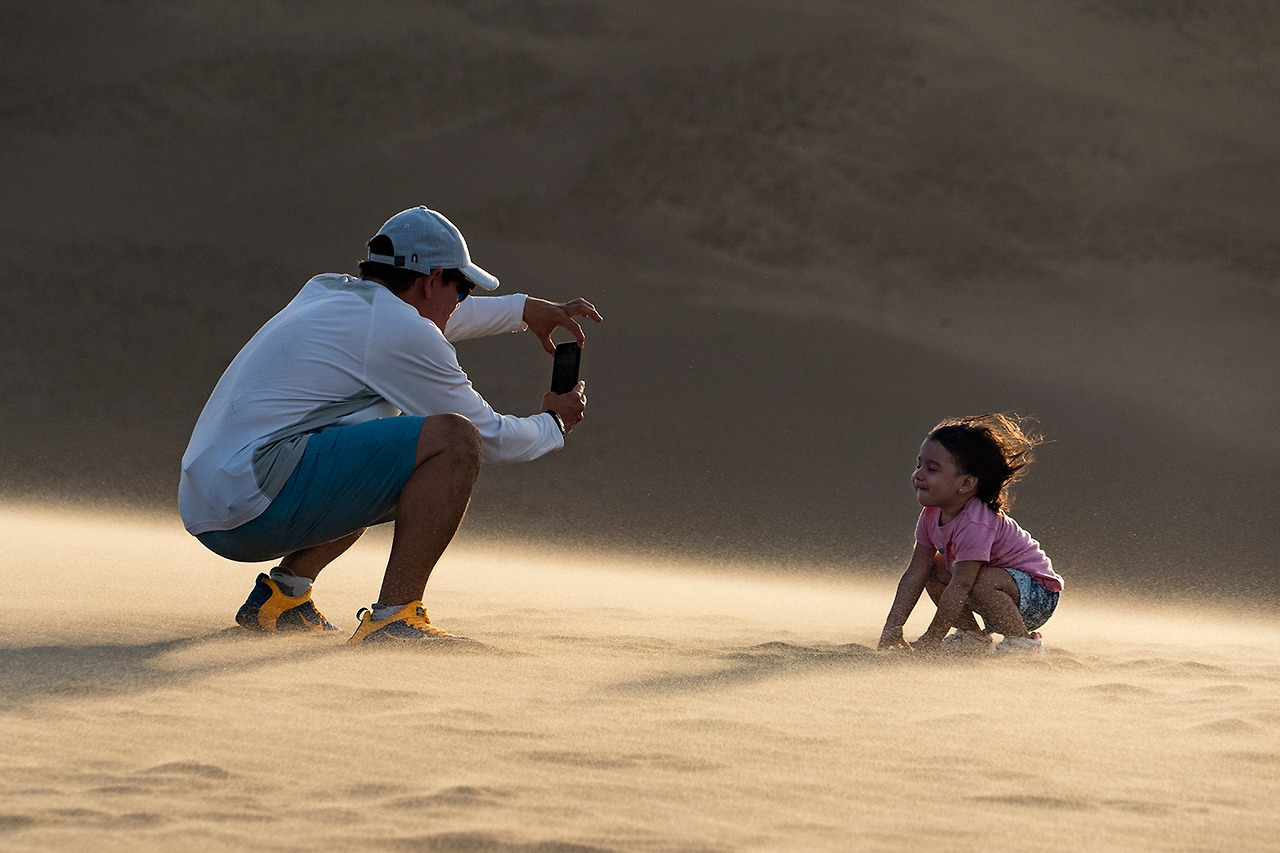 아득히 펼쳐진 모래언덕 뒤로 해가 떨어지고 모래의 표면 위로 황금빛 모래들이 바람에 날려 비단 보자기를 덮어 씌운 듯 언덕을 덮어 왔다. 그 바람에 날리는 모래들이 마치 노을에 물든 안개처럼 느껴졌다.