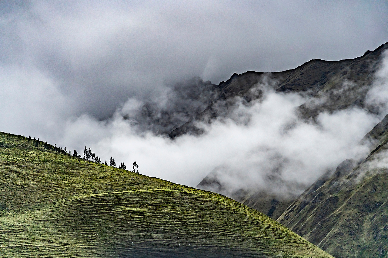 산허리를 감싸는 구름이 잉카 옛 길에 신비로운 기운을 만들고 있다.