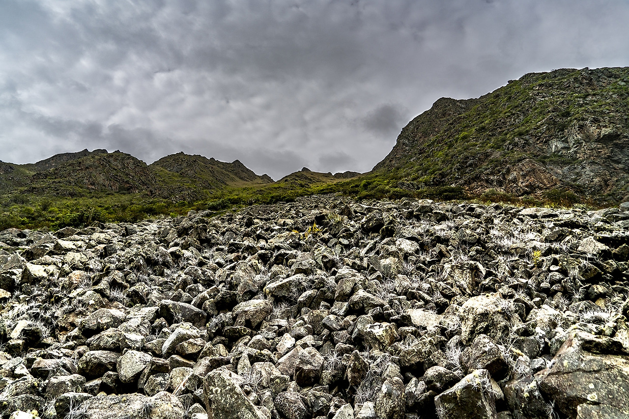산 아래 쿠시차카 강이 흐르는데 산 위에는 돌의 강이 산비탈을 흐른다.