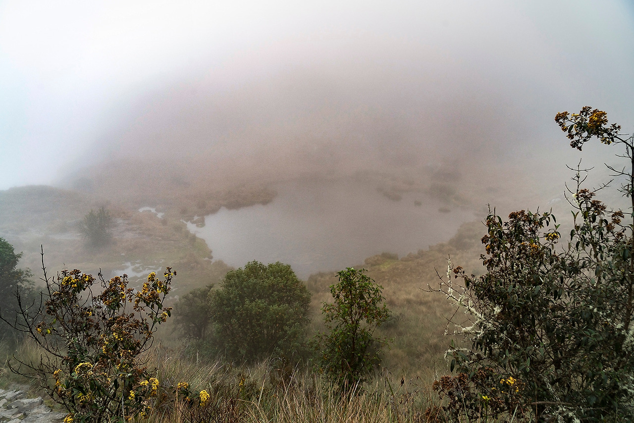 룬크라카이 유적에서 조금 더 올라가면 해발 3900미터 근처에 작은 호수가 하나 있다. 쿠차파타라고 부르는 이 작은 호수는 안갯속에 숨어 전모를 보여주지 않았다. 이렇게 높은 산에 습지가 형성되어 있고 작은 호수까지 있다는 것이 산 자체를 무척 신비롭게 연출한 듯이 생각되었다.