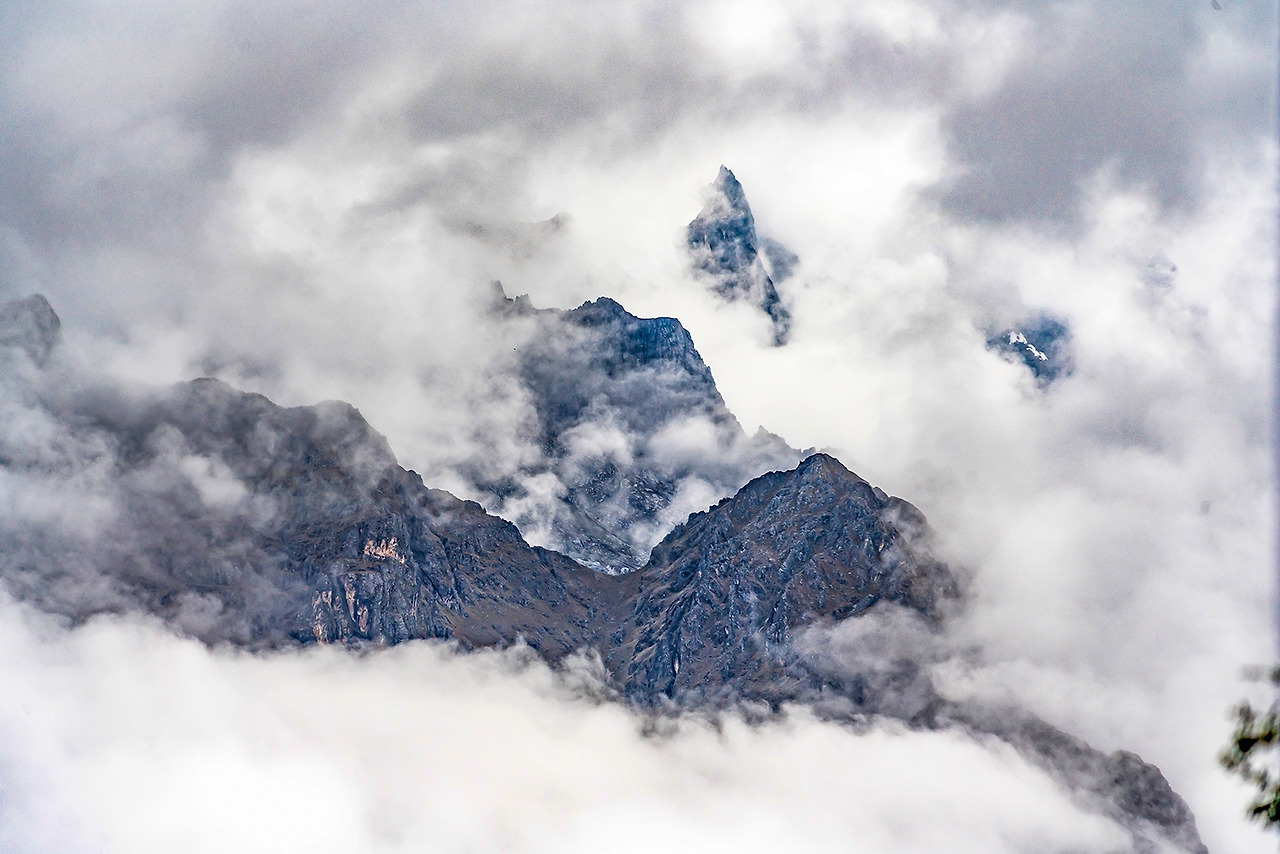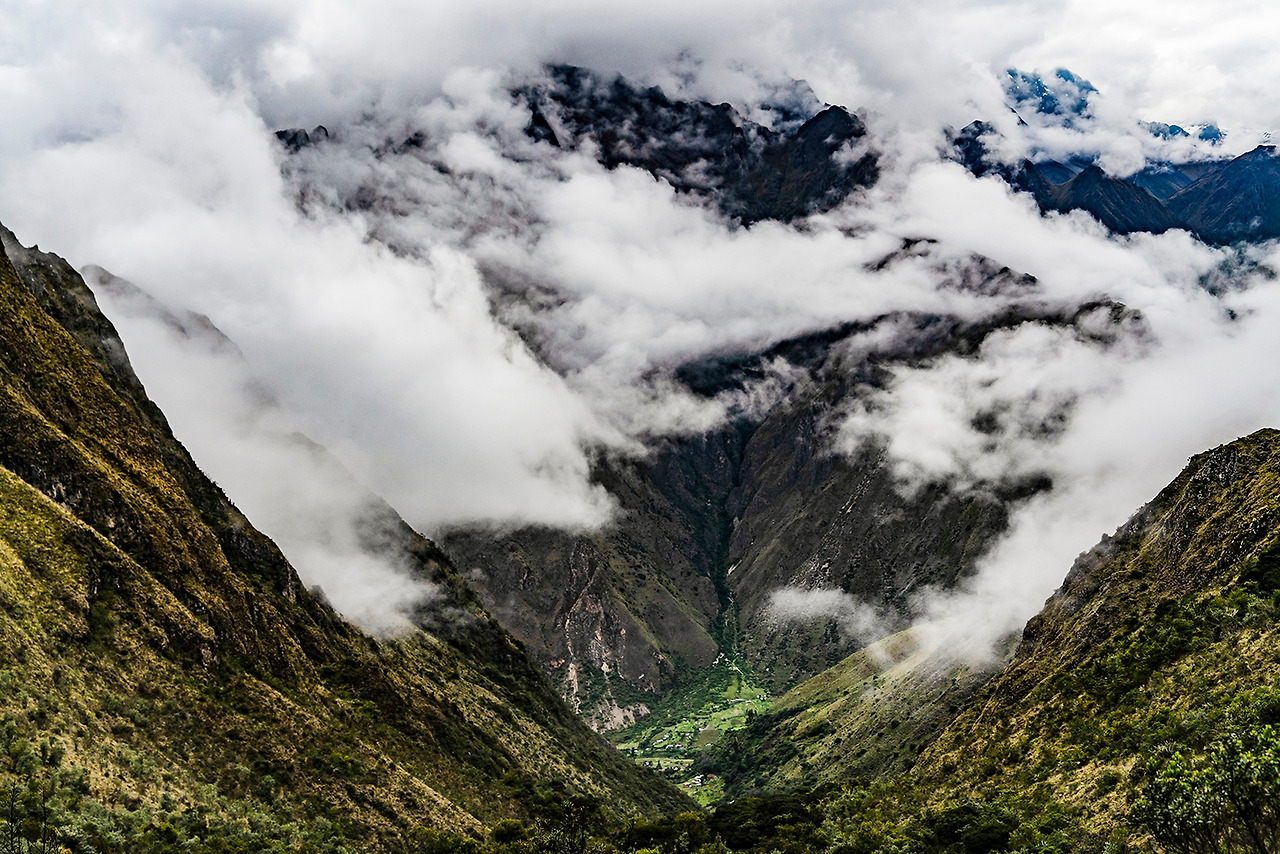 구름이 갈라지면 산 아래 계곡의 마을이 보이곤 한다.