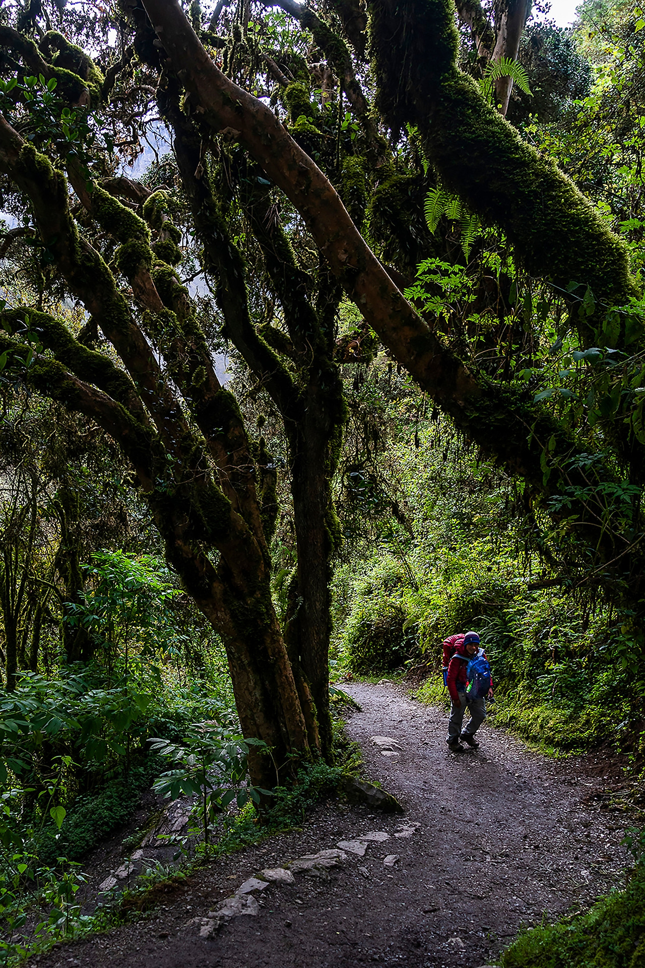 첫 번째 캠프장 와이야밤바는 해발 3400미터인데 캠프장을 떠나 이어지는 길 가의 풍경은 마치 열대우림의 느낌이 난다. 계곡을 흐르는 급류와 빽빽하게 우거진 나무 숲은 길 위에 햇볕 한 조각을 허락지 않는다.