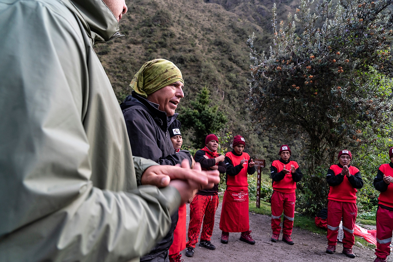 주 가이드 마르코와 포터들이 출발 직전 모임을 갖는다
