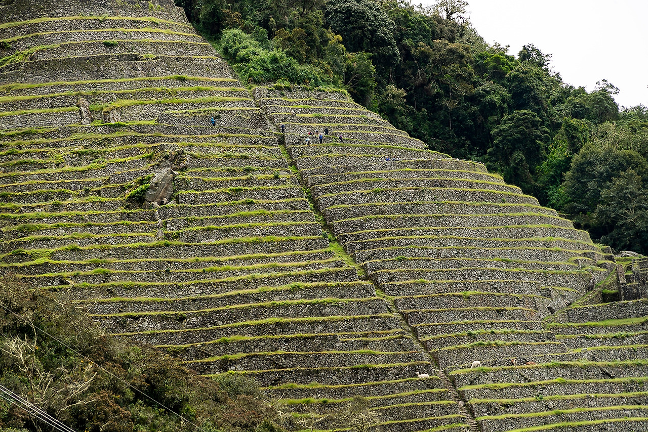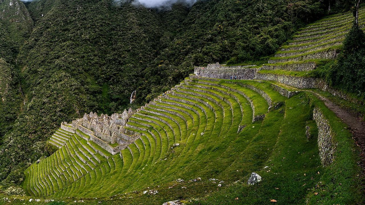 이제부터 길은 아래로 아래로 내려간다. 울창한 수림 사이로 한 번도 평탄한 지점을 만나지 않고 줄곧 내려가야 한다. 그렇게 약 1000미터를 내려가서 해발 2650미터에 이르면 대규모의 계단식 경작지와 그에 붙어 있는 마을 유적이 나온다.
