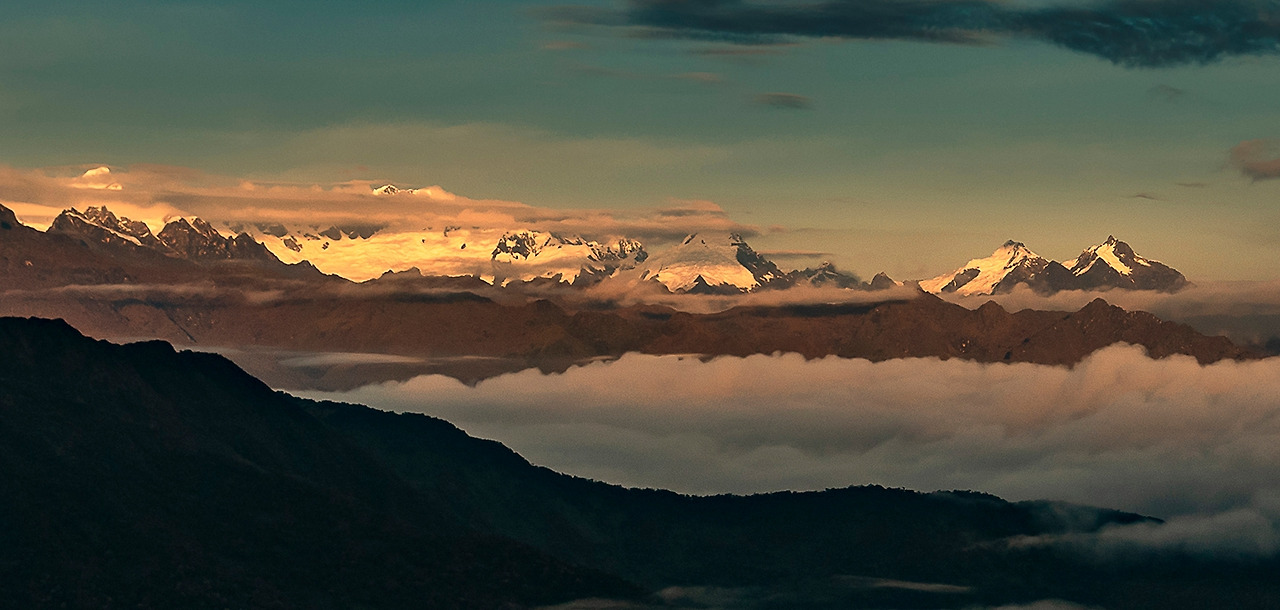 구름바다 뒤로 도열해 선 안데스 설봉들