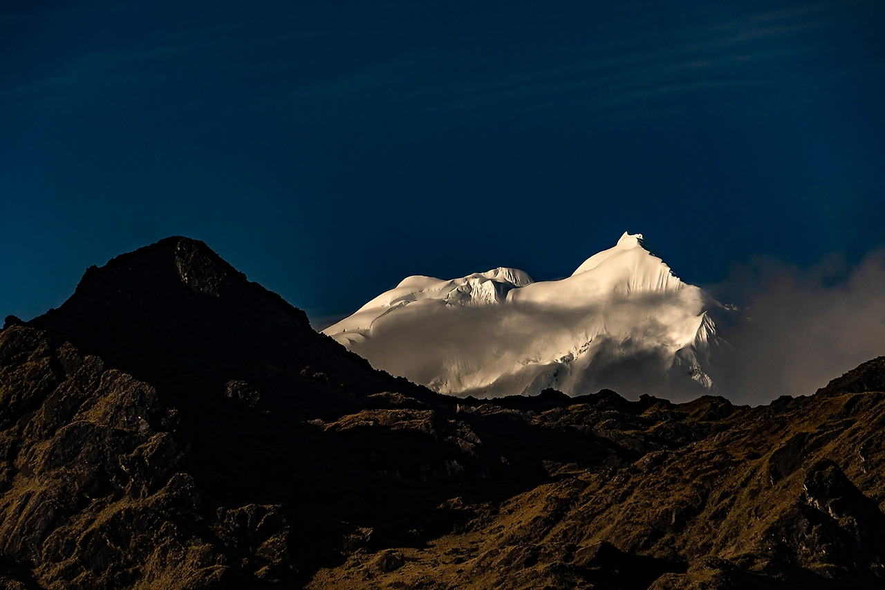 아직 햇볕이 이쪽으로 닿기 전에 길을 떠났다. 앞의 실루엣으로 막아선 산 능선 뒤로 멀리 안데스의 설봉들이 일렬횡대를 하고 섰다. 얼마 가지 않아 유난히 뾰족하게 솟은 바위 산봉 하나가 앞산 능선 뒤로 또렷하게 드러났다. 6271미터의 살칸타이 봉이었다. 안데스에서 38번째 봉우리이자 페루에서 12번째 봉우리라 했다. 살칸타이는 케추아 어로 야생 또는 무적이라는 뜻이 있다고 하는데 일찍 이곳에 온 유럽 사람들이 야만의 산(savage mountain)이라는 이름으로 불렀다고 한다.